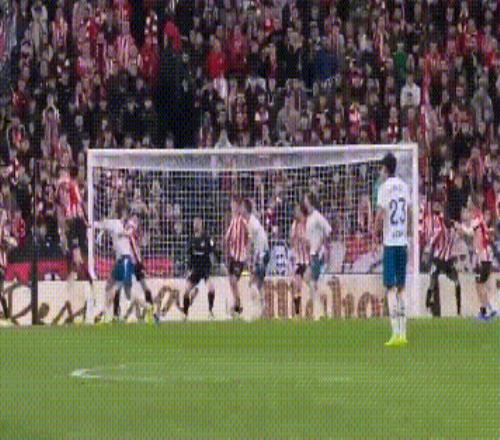 比赛进行到第38分钟,毕尔巴鄂竞技率先破门,当时双方在禁区线附近乱战,结果皮球反弹到门前,贝伦格尔及时前插,赶在门将解围之前,先出一脚把球捅进了大门,主队1-0领先。