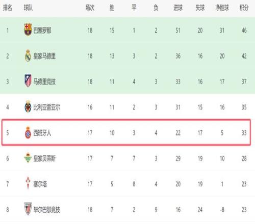 一场21!打出西甲争四黑马:西班牙人5连胜+差前四2分,或进欧冠