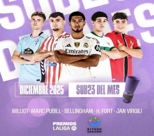 西甲12月最佳U23球员候选:贝林、普维尔、埃克托福特在列