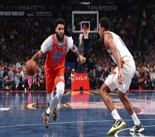 在雷霆和太阳的NBA杯四分之一决赛里,这名去年的常规赛MVP,和其他的先发球员一起,在第三节3分23秒的时候被替换...
